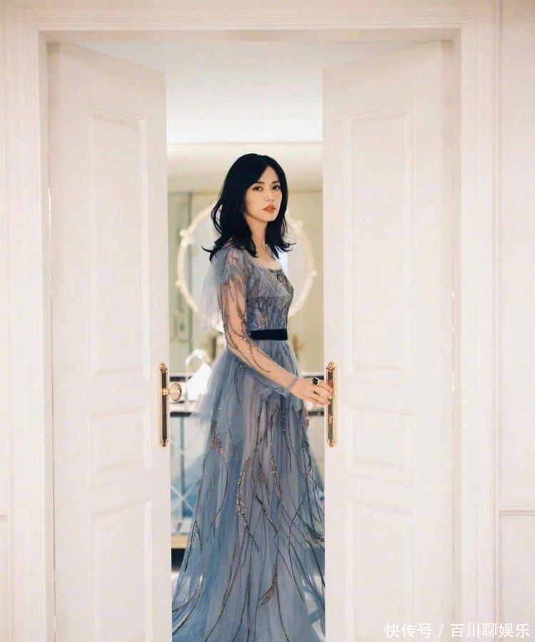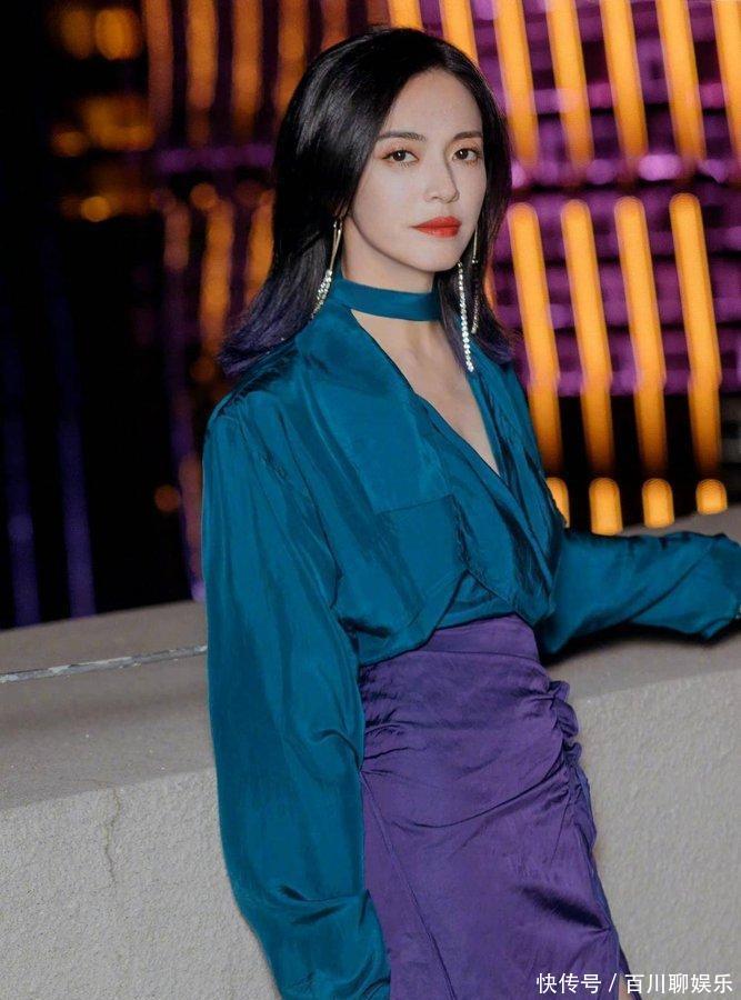 姚晨的身材被低估了,穿蓝色衬衫配紫色包臀裙,黄金比例不输超模
